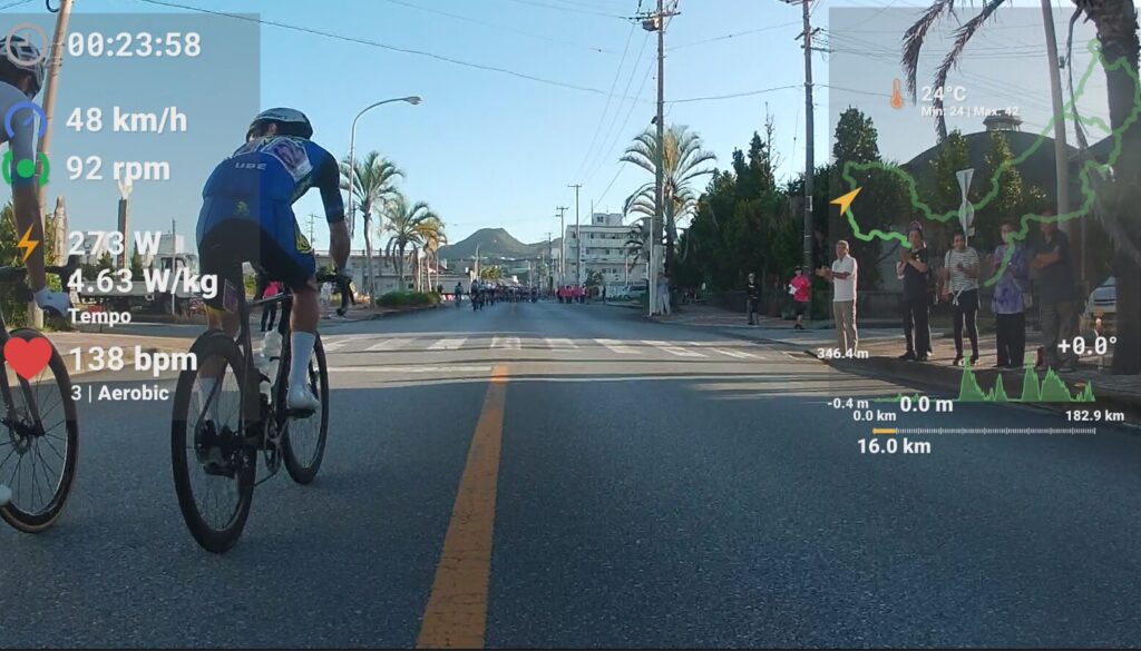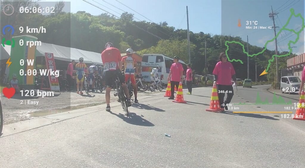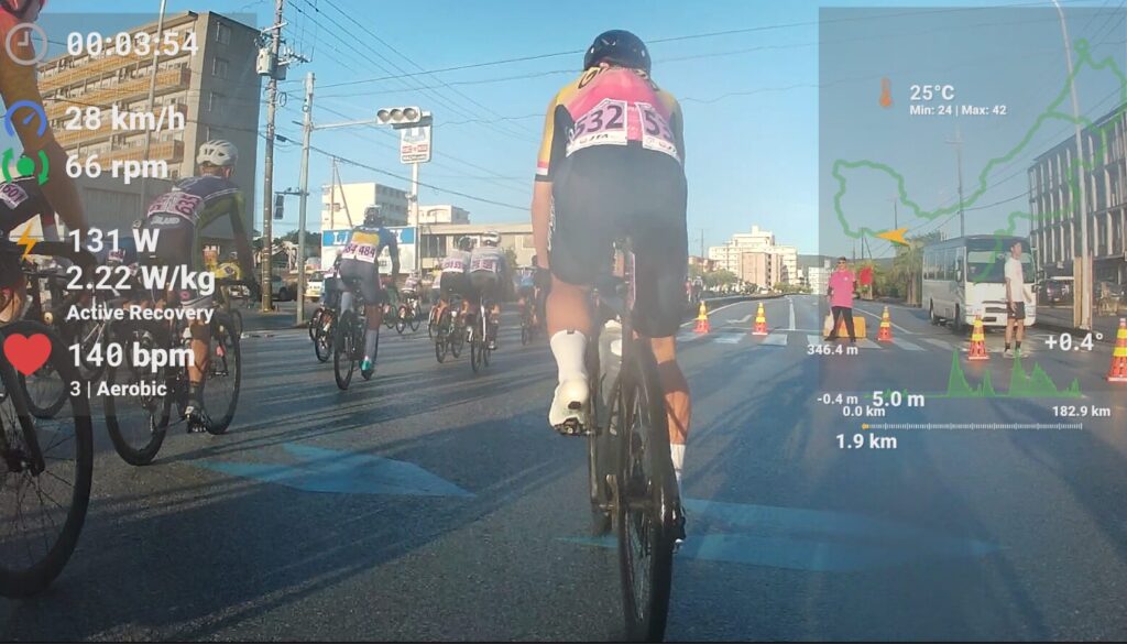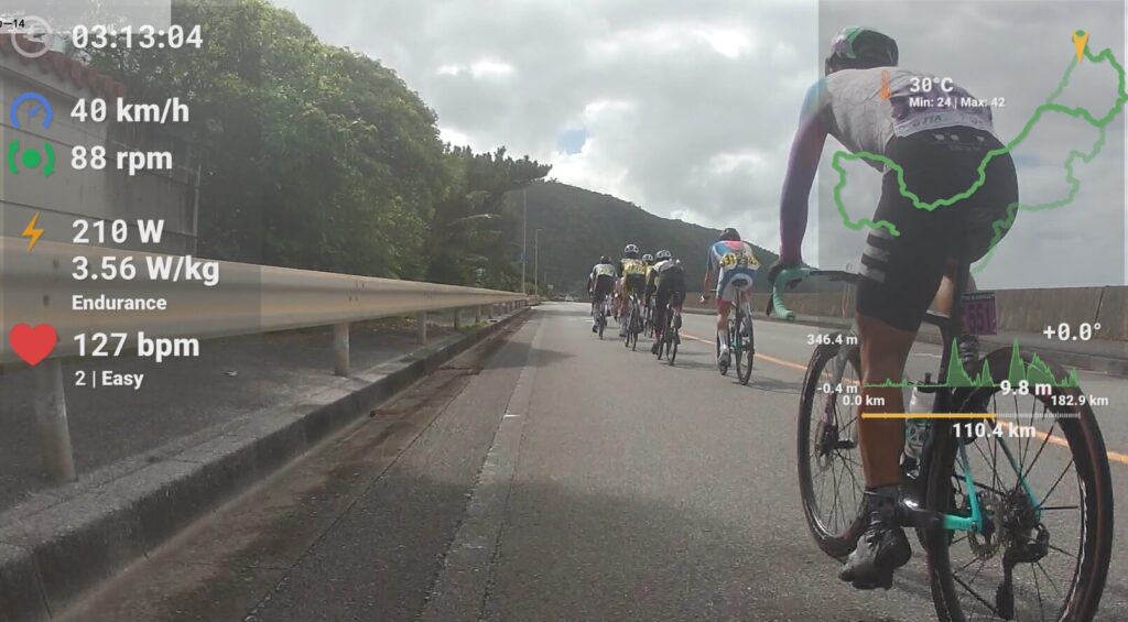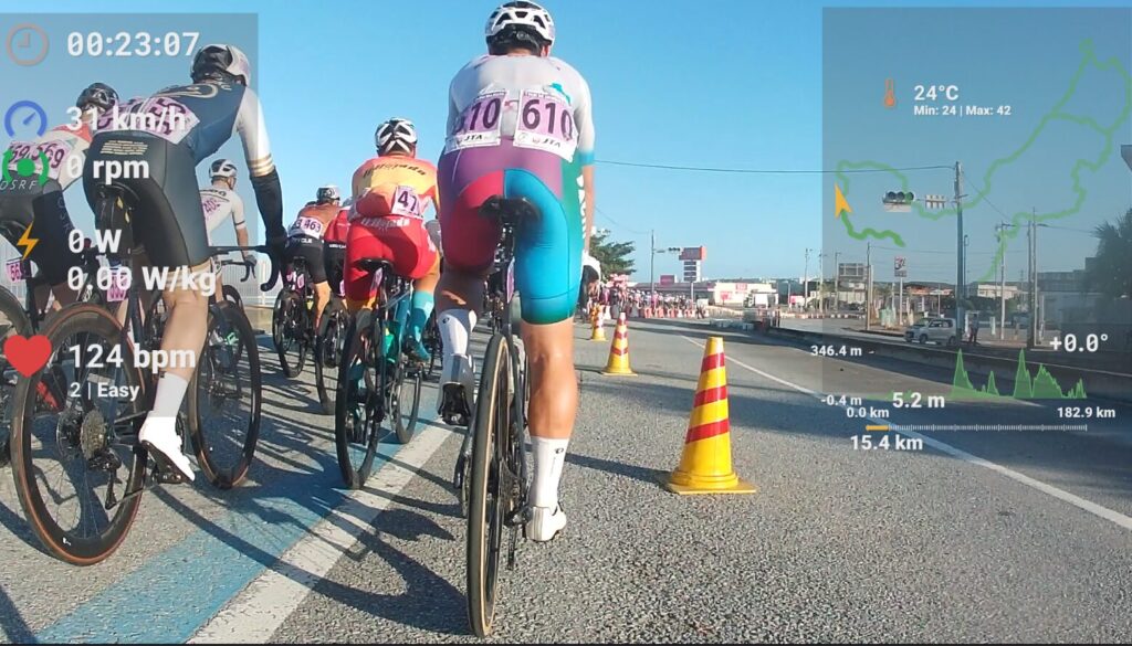 以降は美ら海水族館の登り(出しても5倍くらい)や下りまでは大きな展開はなく進行したが、この位置取りだと前で逃げが発生しているということすら気づけていなかった。