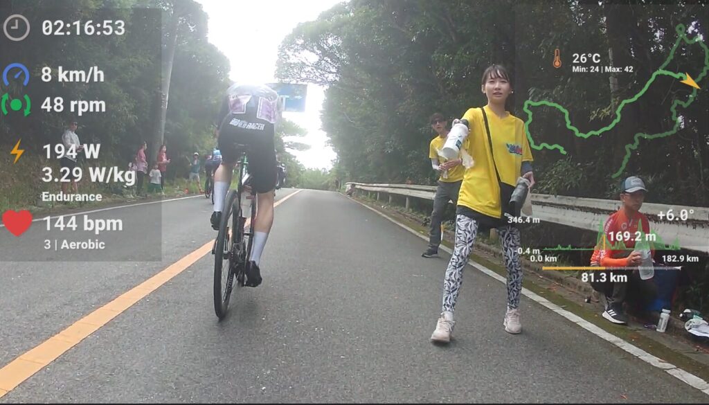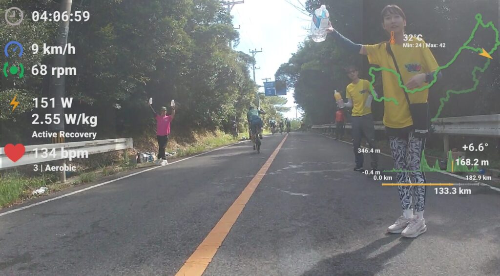 KOM超えた補給所では、チームのえーぞうさんとぴのちゃんが補給してくれて、声聞けるだけでもメンタル維持に貢献してもらえました。まじでありがとうございました。