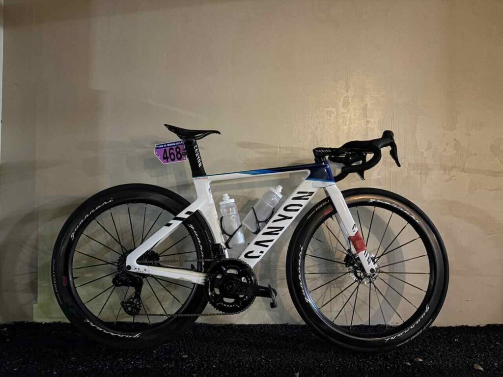 ホイールに関しては、優勝した大前選手とほぼ同じでスポークが異なる。大前選手はステンレススポークで、私はより軽量でエアロなカーボンスポーク。平坦での巡航維持や下りでのスピードの伸びはもちろん、横風に対しても特に不安なく進んでくれる。また、登りに関しても重量は1200gを切っていることもあり、重くなくキビキビ登ってくれる。