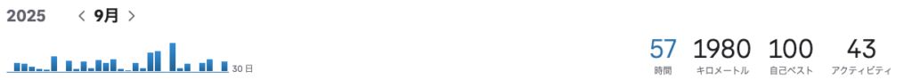 また、9月はレースが多めに入っていることからも、移動などにより練習時間は少なめになっている